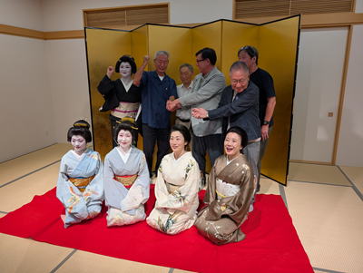 懇親会は桑都テラスに移り、途中からきれいどころも加わって、賑やかに交流を深めました。